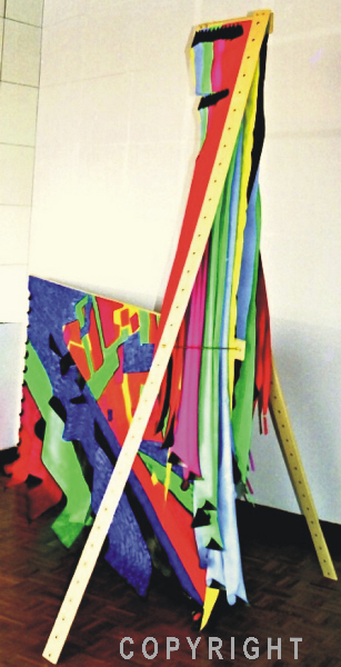 Chèvre - 1997 , (thème I - composition I) , H - 260 x L - 80 x P - 125 cm , bois et acrylique sur toile