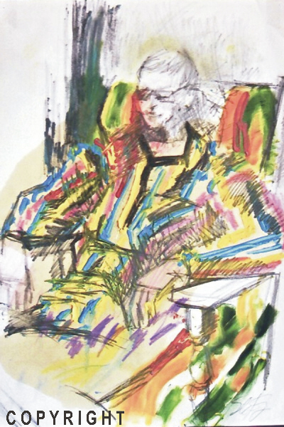 Regardant à TV - 1994 , 20 x 30 cm , dessin , technique mixte sur papier