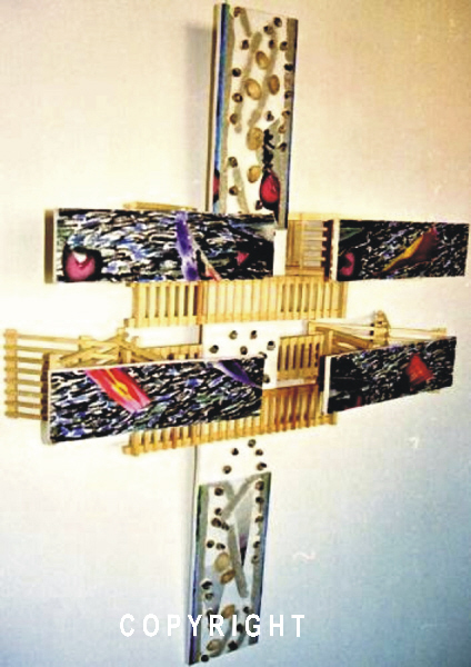 Rythme architectural - 2000 , H - 100 x L - 80 x P - 30 cm , bois , coquillages et acrylique sur toile
