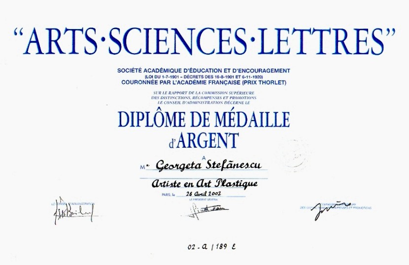 2002 - ARTS-SCIENCES-LETTRES, Médaille Argent, Soc. Académique d'encouragement et d'éducation, Paris, FR