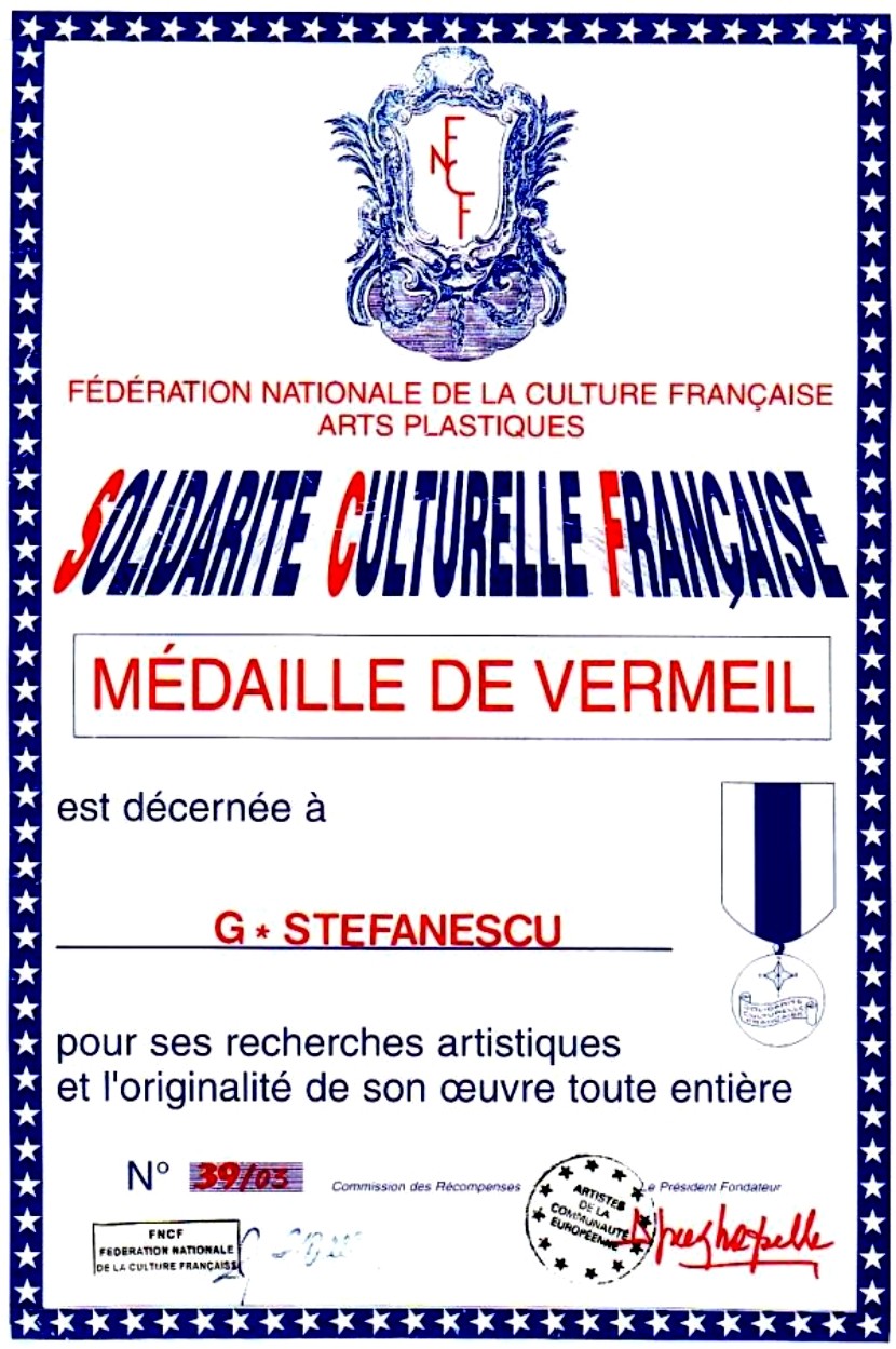 2003 - SOLIDARITÉ CULTURELLE FRANCAISE , Médaille de Vermeil , FNCF-EAG , FR