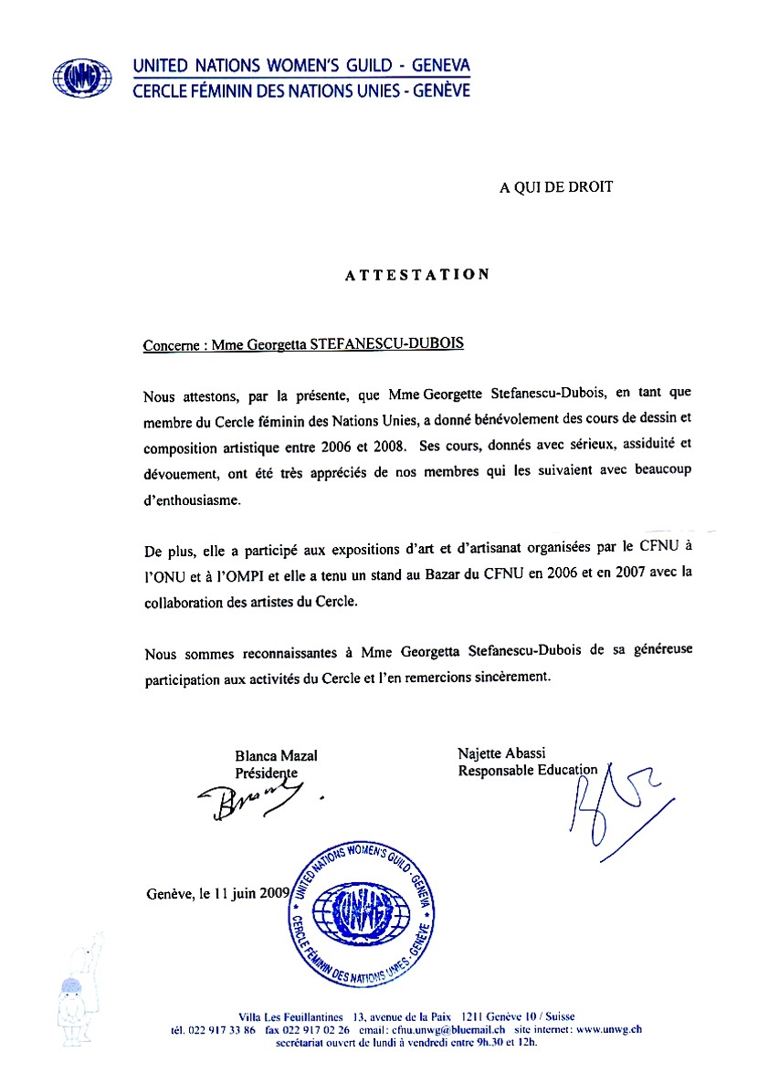 2005 - Depuis professeur indépéndant de peinture , CFNU/UNWG et Institutions Internationales , Genève , CH