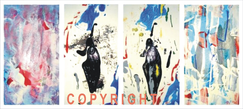 Yeti I , II , III , IV - 2006 , quadiptyque , 72 (18 x 4) x 33 cm , acrylique sur carton