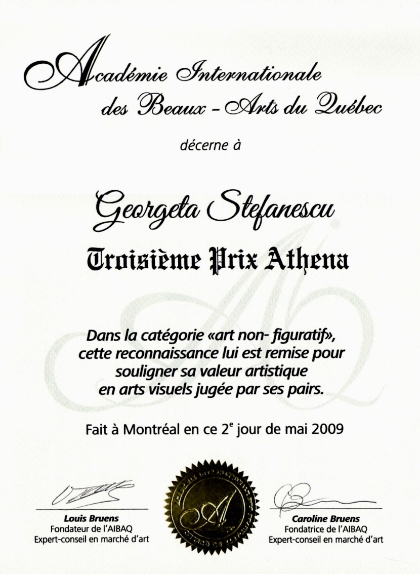 2009 - Prix ATHENA , AIBAQ (Académie Internationale des Beaux-Arts du Québec) , CA