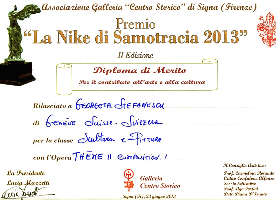 2013 - Prix LA NIKE DI SAMOTRACIA , Associazione Galleria Centro Storico , Signa , Florence , IT