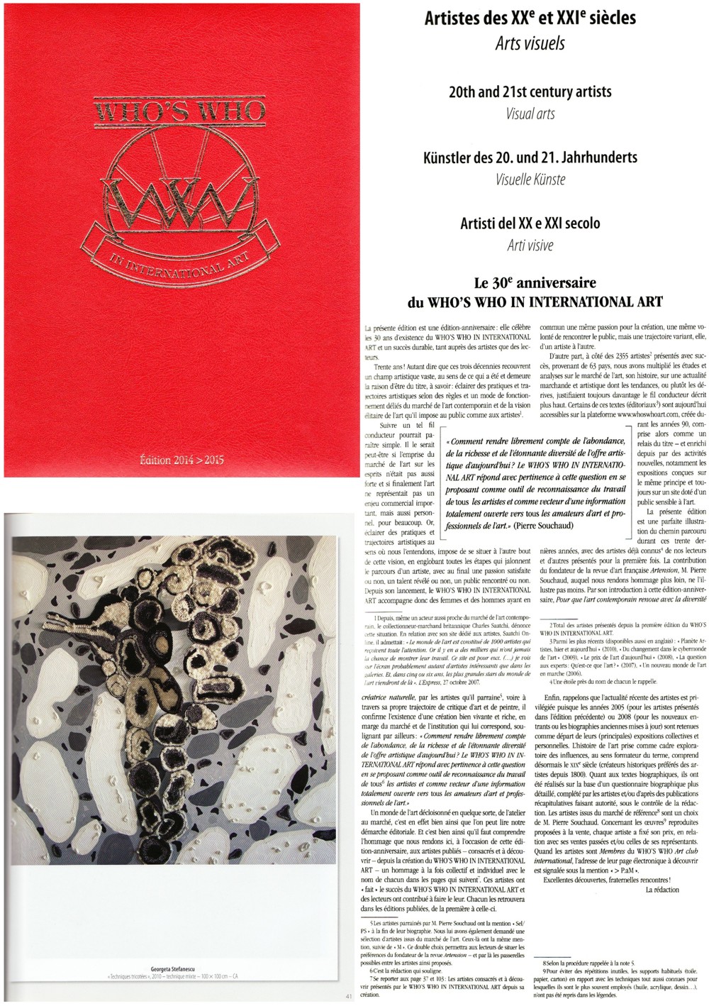2014 - WHO'S WHO IN INTERNATIONAL ART 2014 - 2015, anniversaire 30 ans d'existance, Carouge-Genève, CH