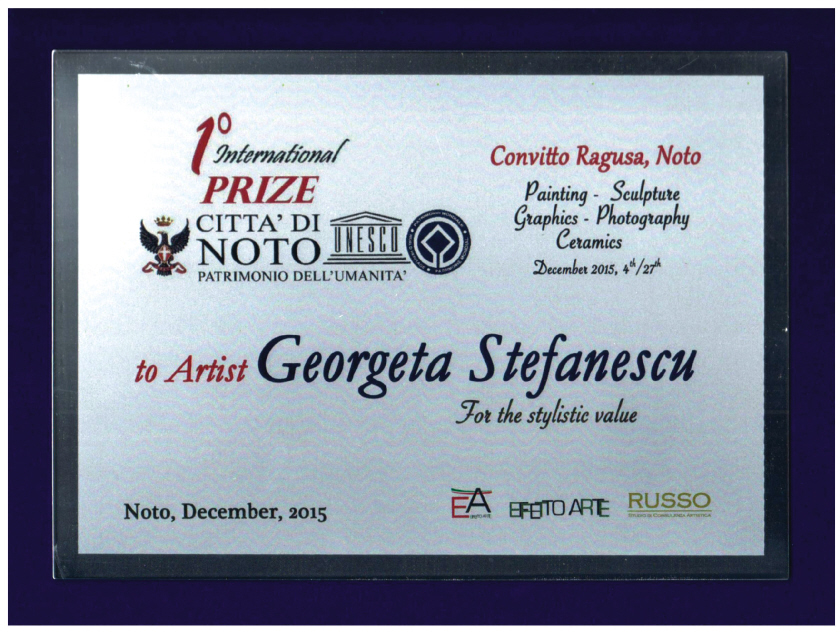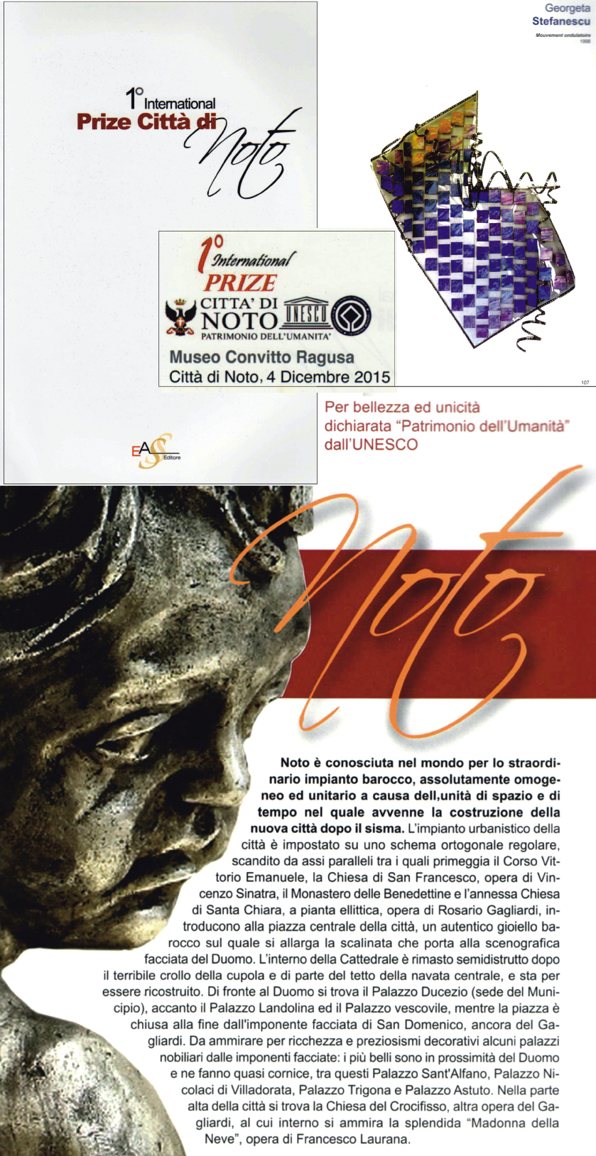 2015 - 1st International Citta di NOTO Award , UNESCO Heritage , "Convitto Ragusa"Museum , Sicily , IT