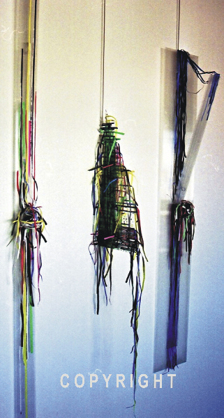 Calusari - 2000, I : H-200xL-15xP-10 cm , II : H-150xL-25xP-10 cm , III : H-130xL-10xP-25 cm, plastique et acrylique sur toile