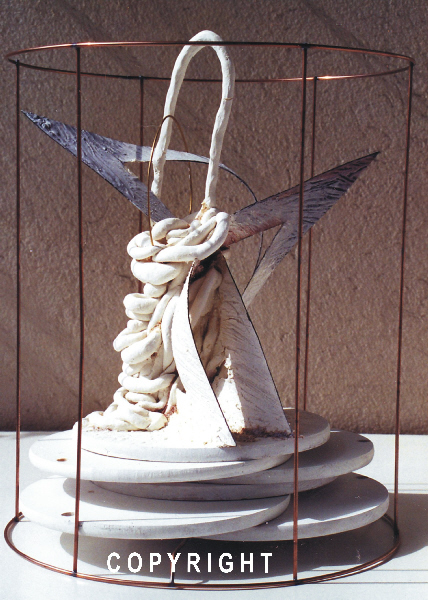Victoire - Capture 2004 , H - 35 x D - 32 cm , technique mixte bois , argile et plastique