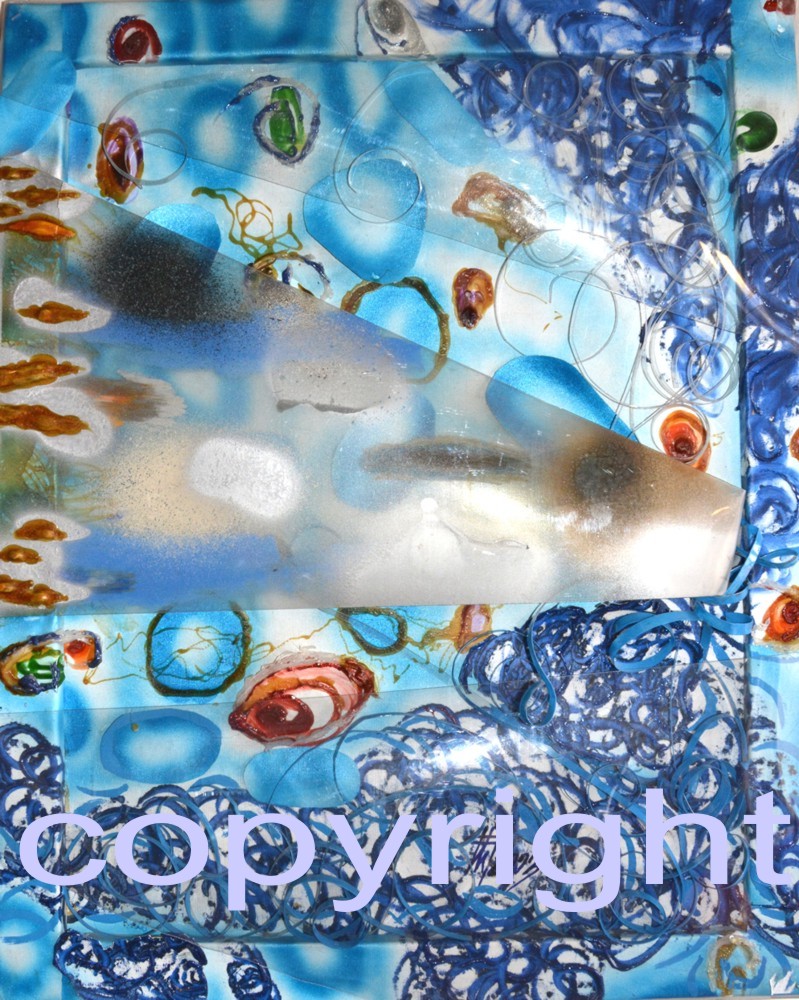 Aquarium - 2003 , 70 x 87 cm , technique mixte sur toile et plastique