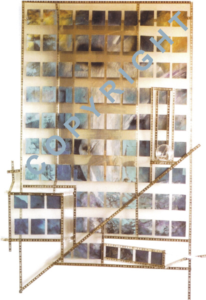 Balade maître "Manole" , 1998 , 142 x 172 x 38 cm , huile sur toile , plastique , fils de métal