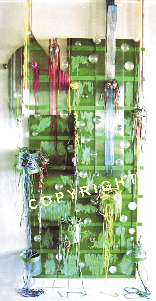 Décousu - 2002 , 115 x 245 x 40 cm , bois , plastique , acrylique sur toile , peinture métalisée