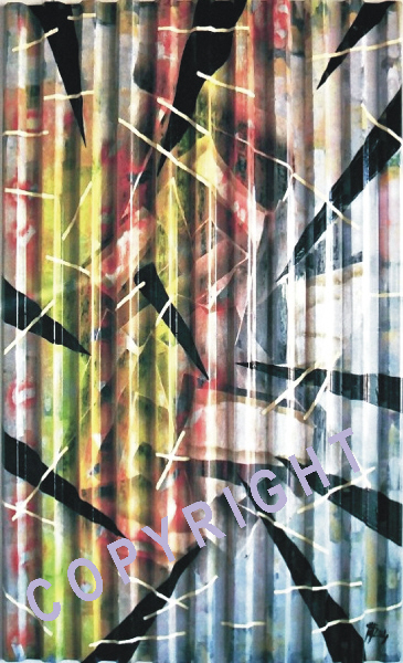 Effets spatiaux - 2004 , 92 x 120 cm , technique mixte sur plastique , collage de papier