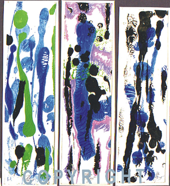 Sentinelles I , II , III - 2005 , triptyque , 24,5 x 33 cm , acrylique sur carton