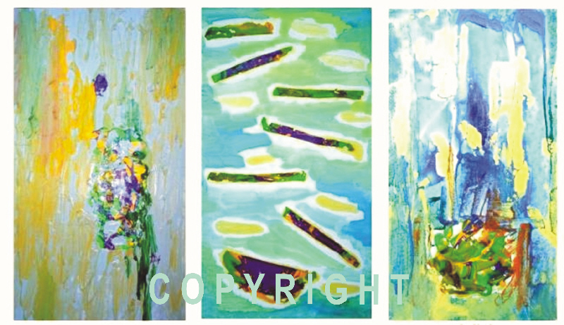 Ìles vierges I , II , III - 2006 , triptyque , 54 ( 18x3) x 33 cm , acrylique sur carton