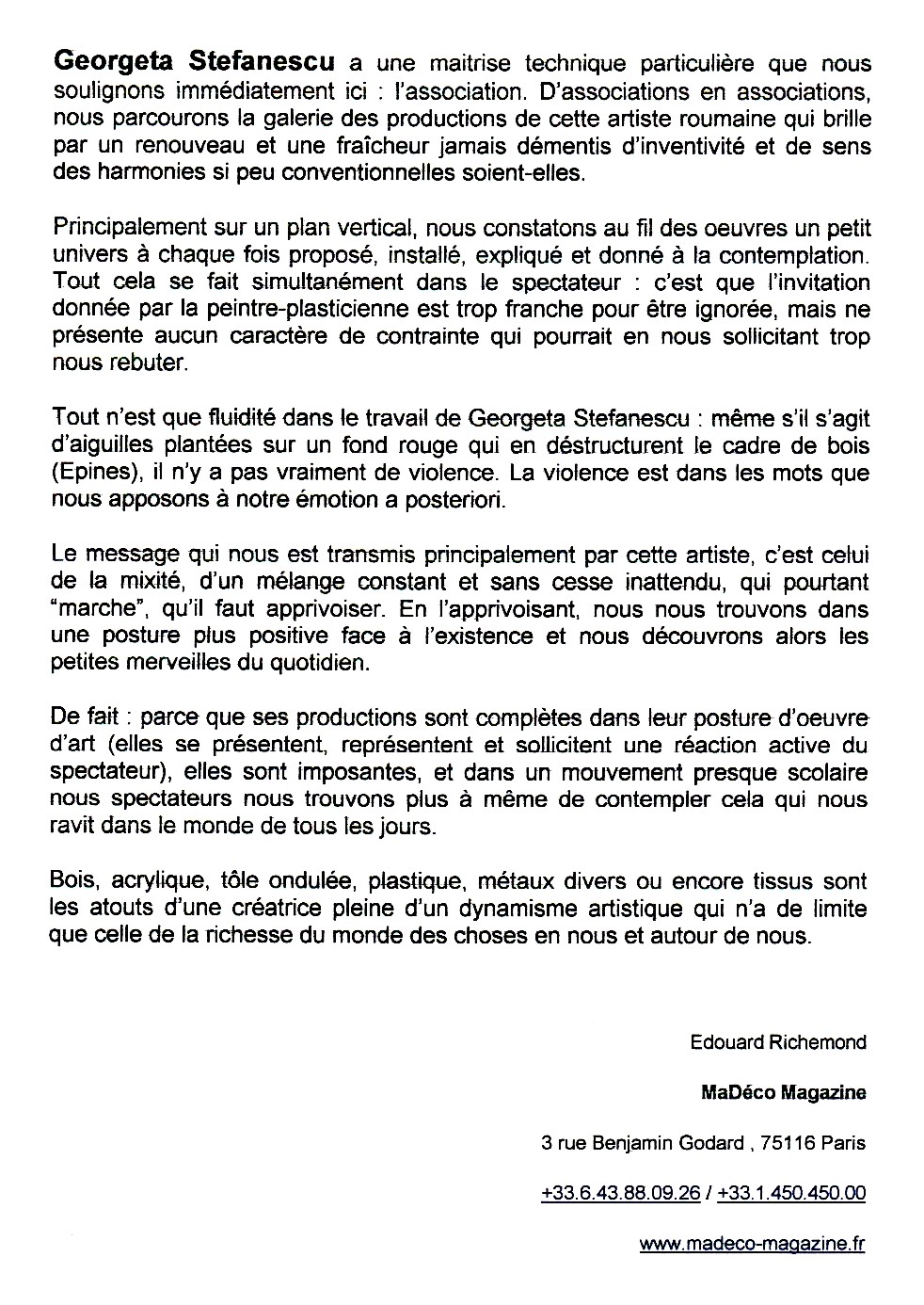 2014 - MaDéco Magazine - website Internet , Edouard Richemond - article critique d'art , Paris , FR